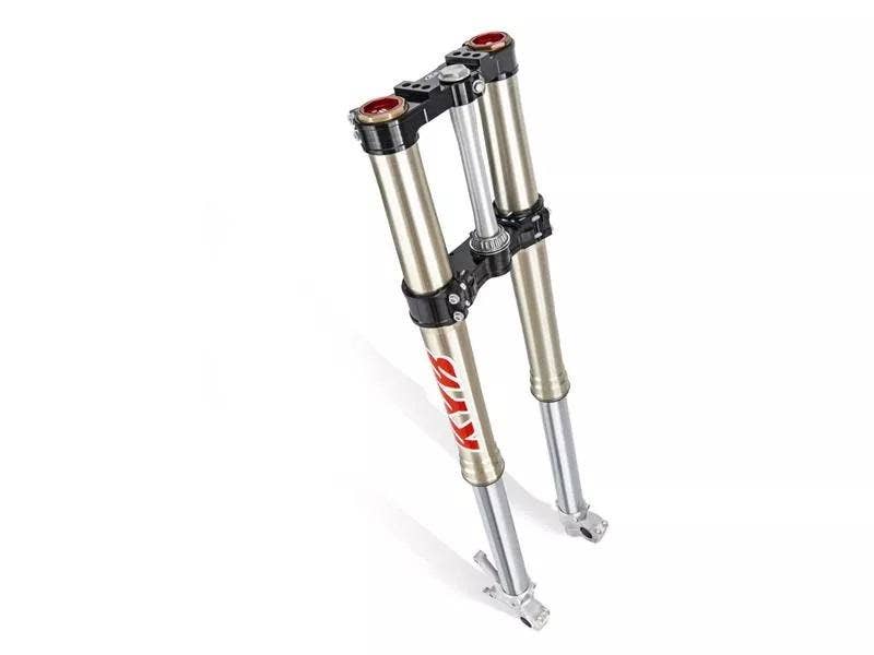 Monoshock Kayaba C46 RCU: Monoshock KYB lze považovat měřítkem v závodním kontextu pro svou schopnost absorbovat nerovnosti terénu, úroveň trakce přenášené na motocykl a konzistenci výkonu, a to i při obzvláště náročném provozu. Jeho hydraulické nastavení lze plně přizpůsobit úpravou vnější komprese (vysoké i nízké rychlosti) a nastavením odskoku.
