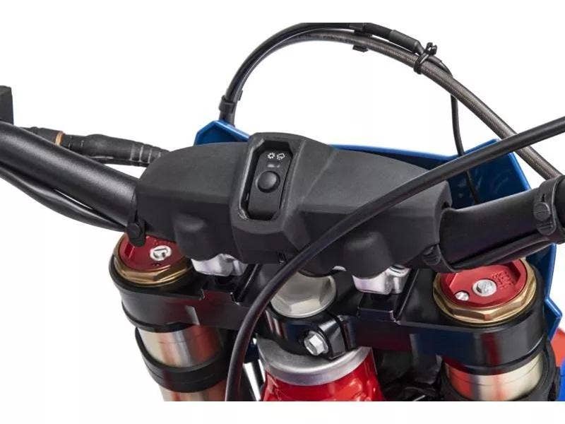Zesílené chrániče rukou: Chrániče rukou jsou vyrobeny z dvoukomponentního materiálu a nejenže dodávají motocyklu závodní vzhled, ale také jsou obzvláště odolné i při nejnáročnějším terénním použití.